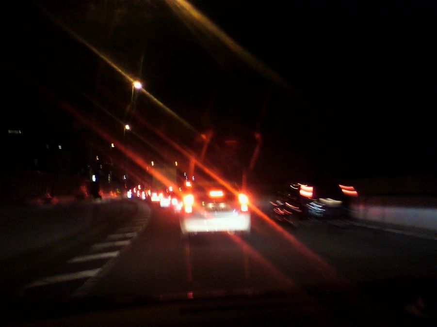 さて、右の画像は首都高速(中央高速方面)のトンネル内です。ここまでは何とか渋滞を回避して順調に進みました。僕は寿司仲間と一緒に一路、稲城を目指していました。