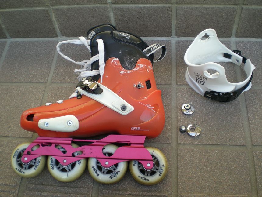 カフ交換の為に取り外しました。以前S-FOURさんから取り寄せた交換用カフを早速装着しました。昨日のスラ練では結構転倒したので、シェルも特に先端部分が傷だらけ。交換用シェルなんてあったらいいですネ!何かシェルを守る方法ってないカナ?FRを使っているスラローマーの方達はどぉーやってるんでしょうかネ!?